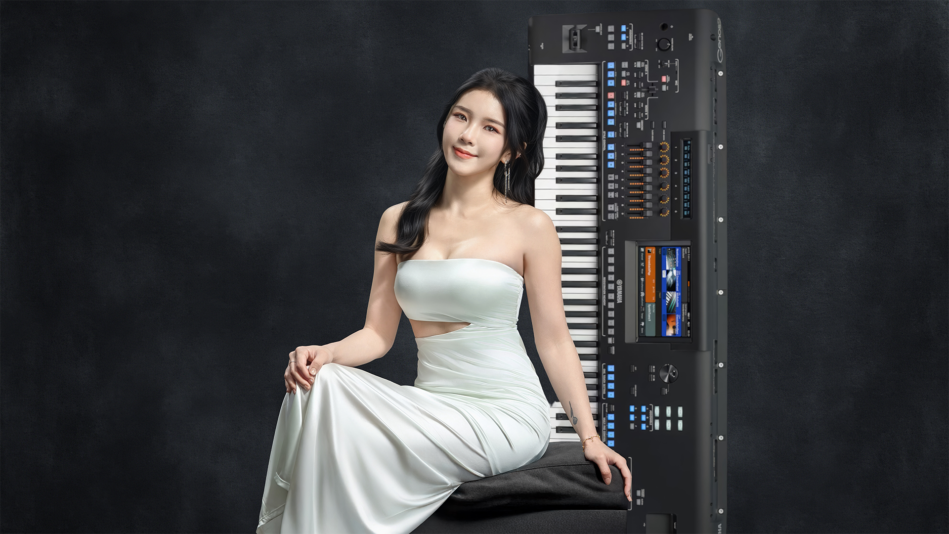 本次婚禮演出中,Ann Lin 演唱了曲婉婷自創的英文歌曲 《Drenched》,這首歌訴說一段無法自拔的愛情盼望,旋律溫暖動人。編曲以 Electro Piano 音色為主,細膩鋪陳出甜蜜感,讓整首歌曲的氛圍更加溫暖且浪漫。
